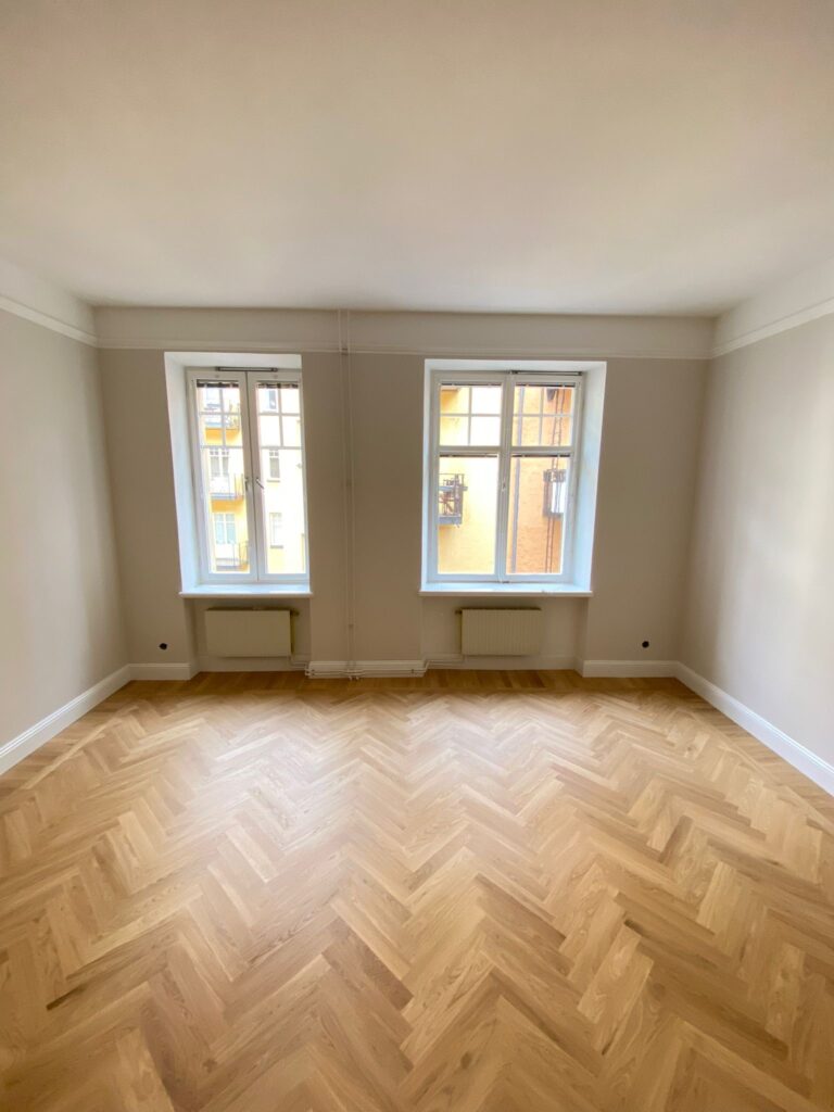Slipning och lackering av parkettgolv i en lägenhet. Resultatet blev som nytt!